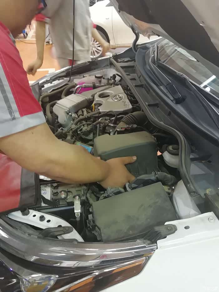 保养的师傅已经在准备中了,我抽空给小白拍两张照片。