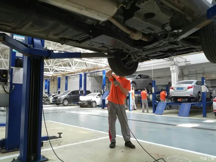 这个是刹车油,能用很久的,只要检查一下液面就可以了,并不需要更换,这就是保养的全过程,其实总体并不是很久,很快就可以完事,人员、现场环境等都比汽修要专业一些的。