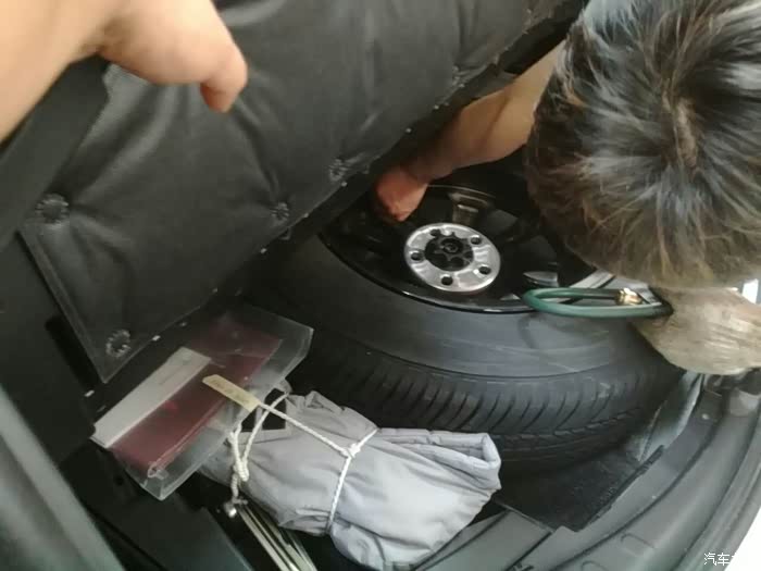 当然,还有备胎,备胎的胎压也很重要,检查一下,另外备胎的胎压需要多打一些,因为常年不用,所以可以打高一点