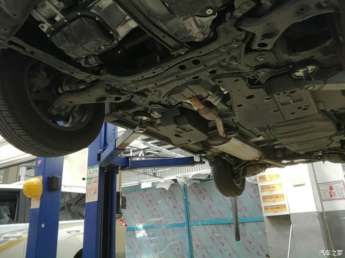 车辆底盘,车尾角度拍的,排气管什么的,看着还挺干净的