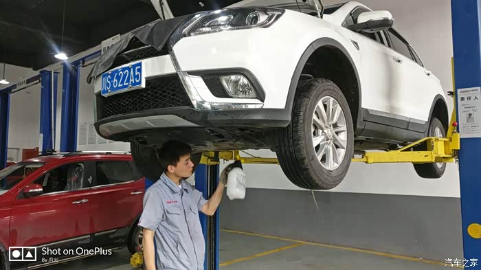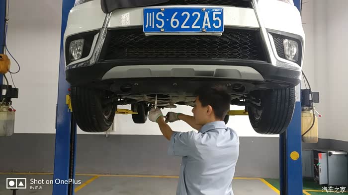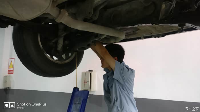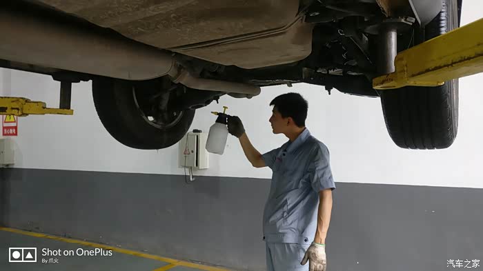 这次的保养里程是48485公里,这是我在汽车之家的家家商城里面买的银美孚5W30的全合成机油,309一桶。看这就是今天需要保养的东西:机油、刹车油、机油滤芯和垫圈。师傅升起小六之后先紧固了底盘的各个需要紧固的地方,并对底盘做了详细的检查,当然我也要给师傅点个赞。