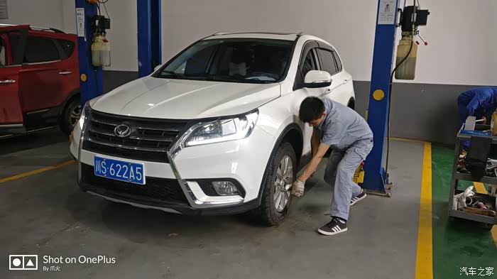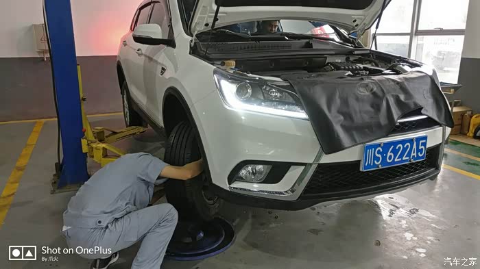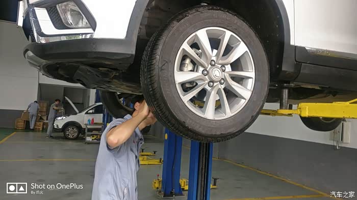 刹车油换完毕之后放下了小六,又检查了胎压和紧固了轮胎的个个螺母。