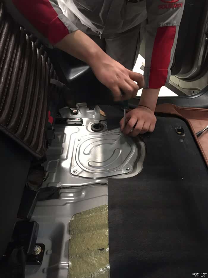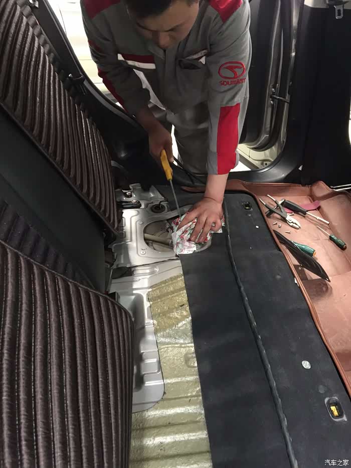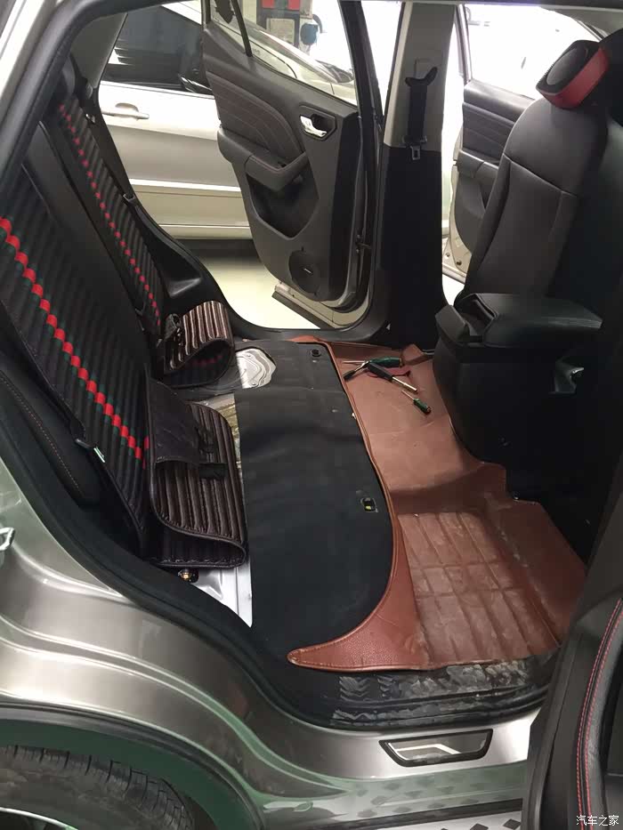开干,首先要拆掉后排座椅的坐垫。拆后排座椅坐垫的唯一办法就是,就是,就是..........大力出奇迹,就得使劲往上抬。
