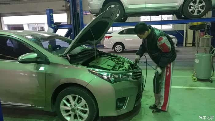 师傅正在加入新的机油,黄色透明的液体~这回感觉我的小卡是从心里往外都干干净净了~