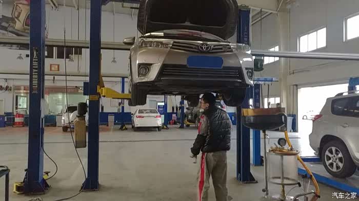 浓稠的黑色机油缓缓的流了出来,想当初加进去的时候可是透明的黄色呀。太埋汰了,定期保养很重要!师傅一边放机油一边检查底盘,每个细节都检查到位,很细致!