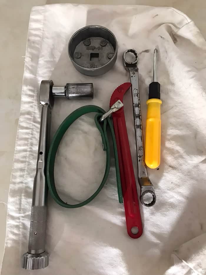 放机油,用梅花扳手来放,机油滤清器用皮带式工具拆卸。