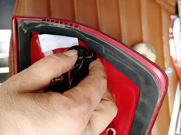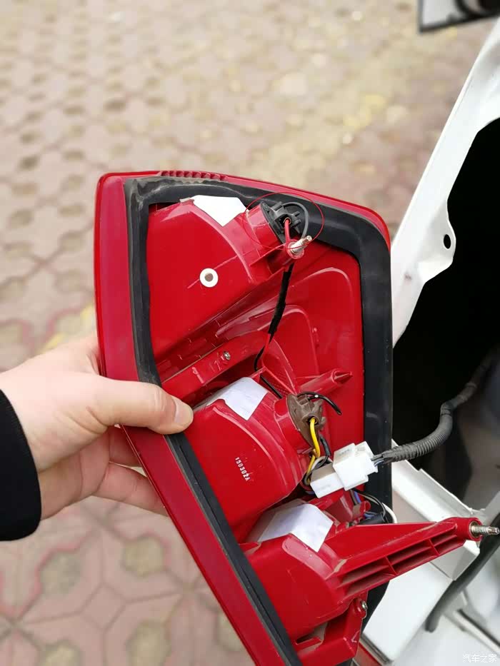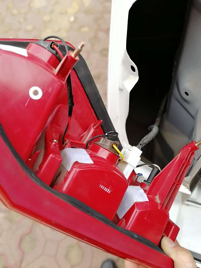 圆洞里有两颗8mm的螺丝,固定着尾灯灯组罩