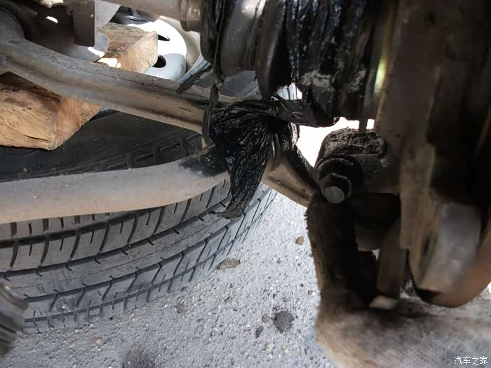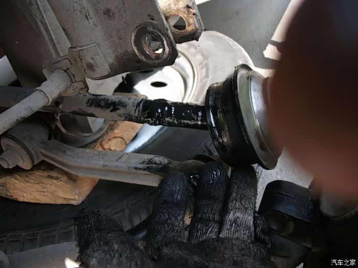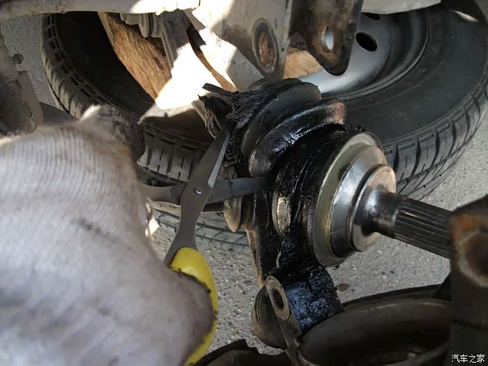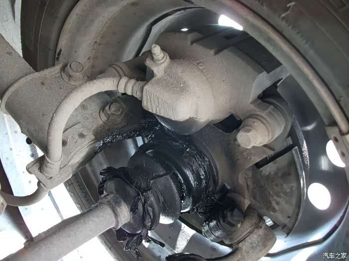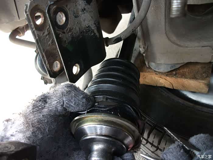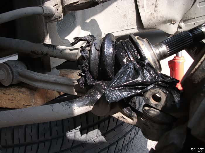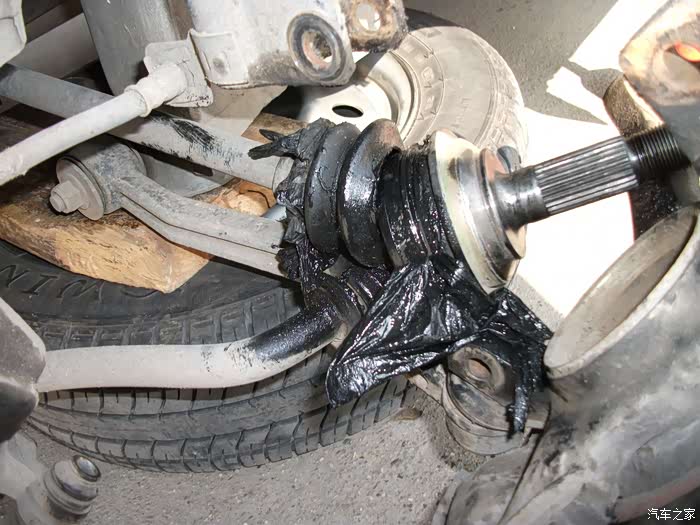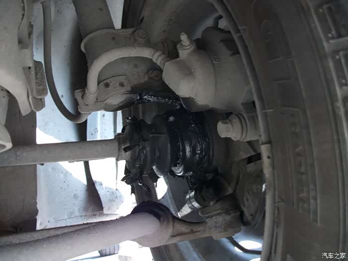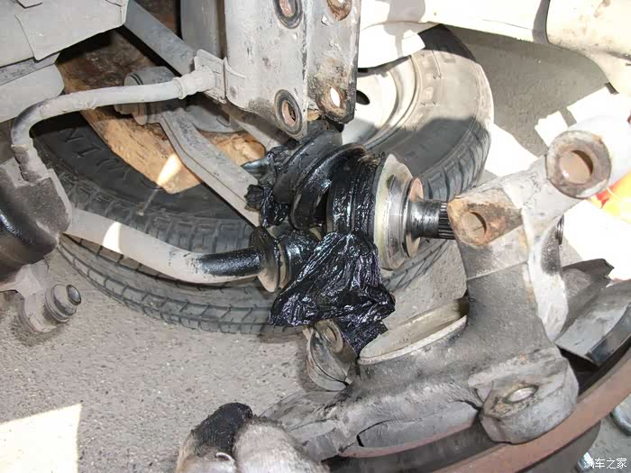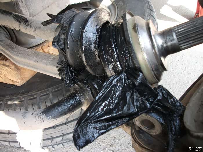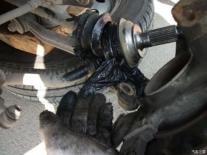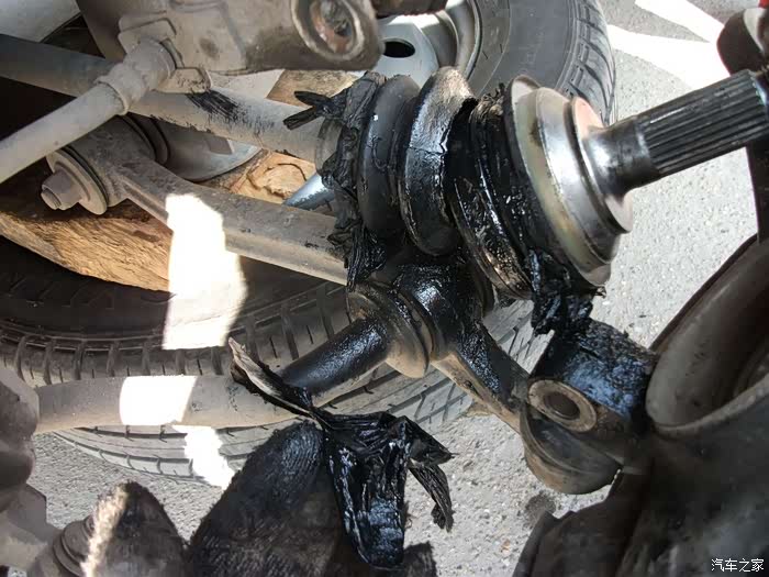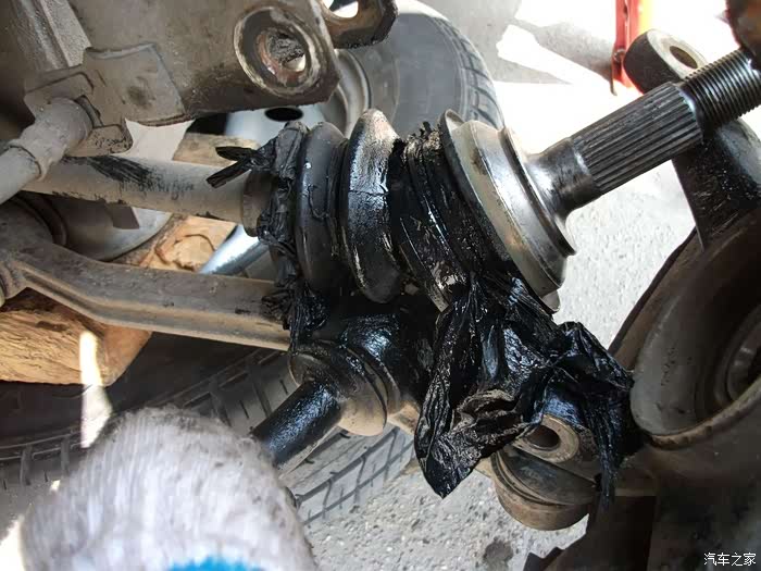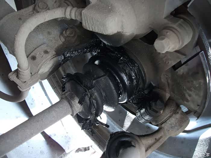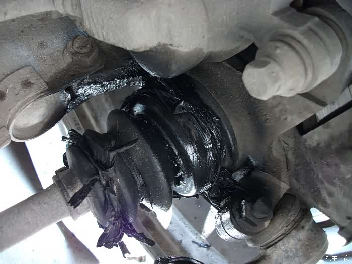 左半轴球头防尘套,烂成一团泥啦!