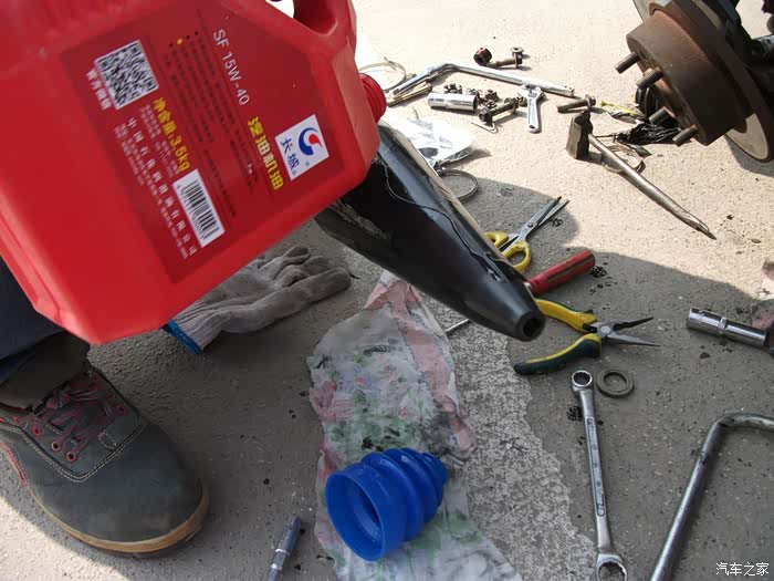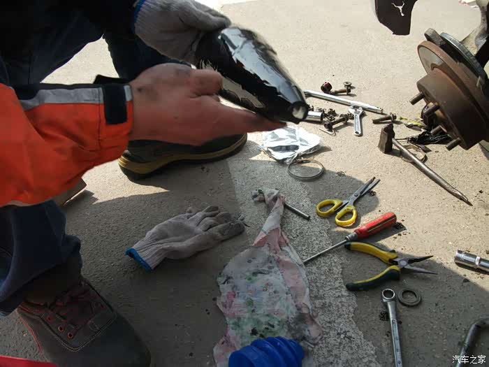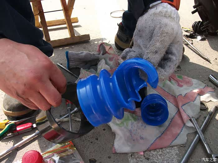 总算是干完活啦,挺累的,第一次不去掉左半轴安装球笼防尘套,取得圆满的成功,心里很激动,为以后再更换右半轴球笼防尘套积累了丰富的经验,今天出这力出这劲,真值啊!谢谢各位观赏!