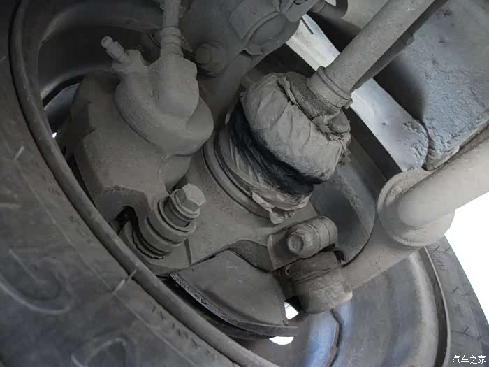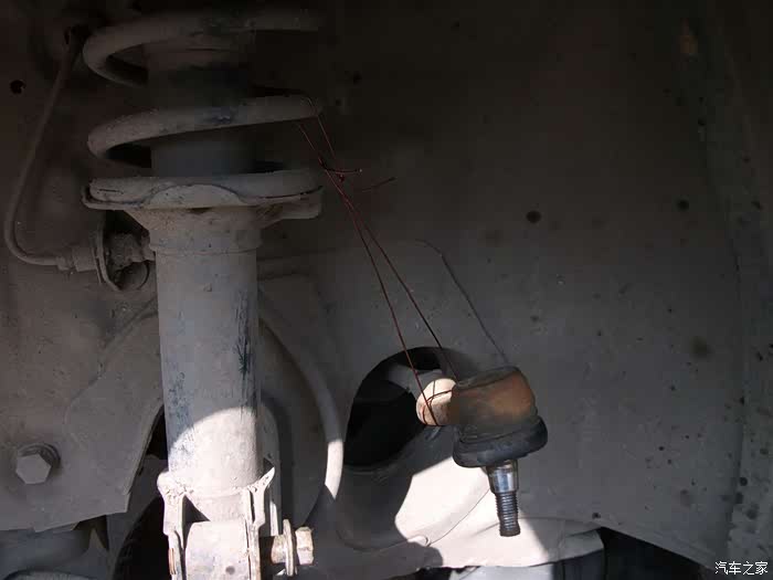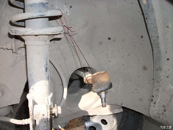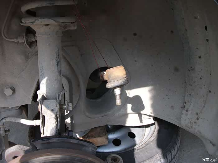 左半轴球头拉杆取下,用铜丝吊起。