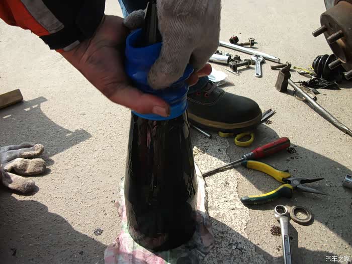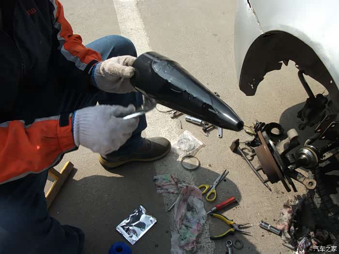 核心工作在此,难点,重点,弄不好会把防尘套憋烂----------我买的两个防尘套由于弹性不好就憋烂了
