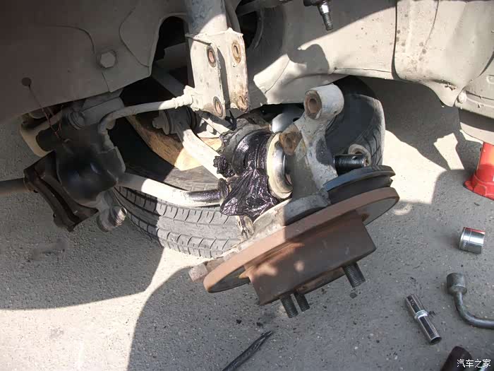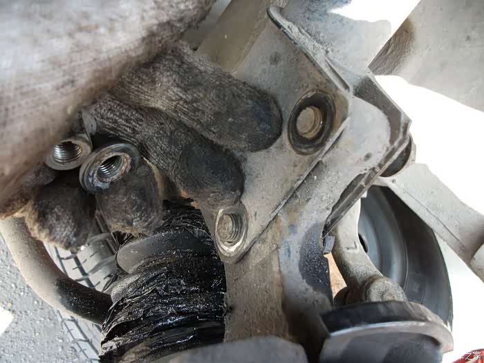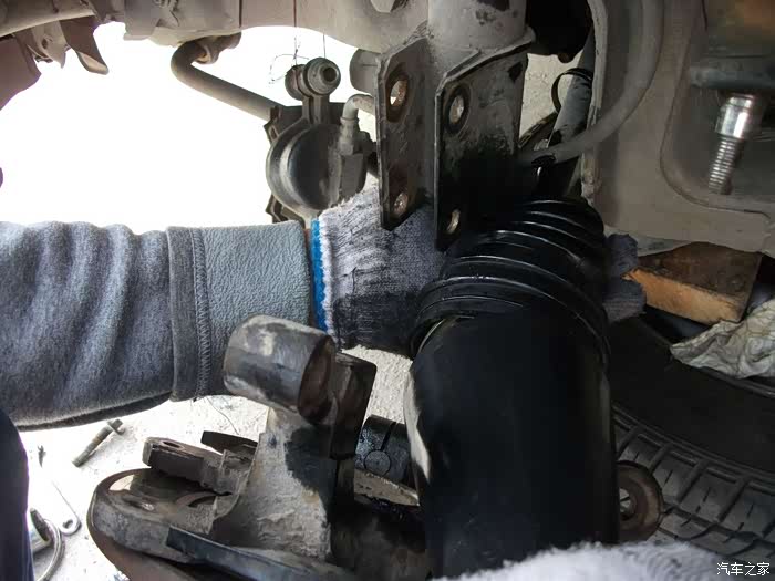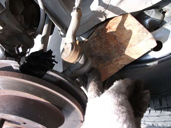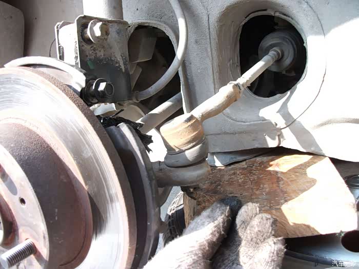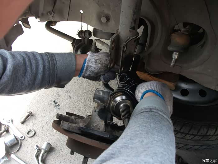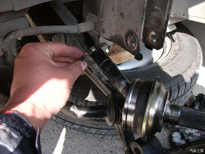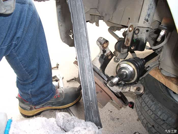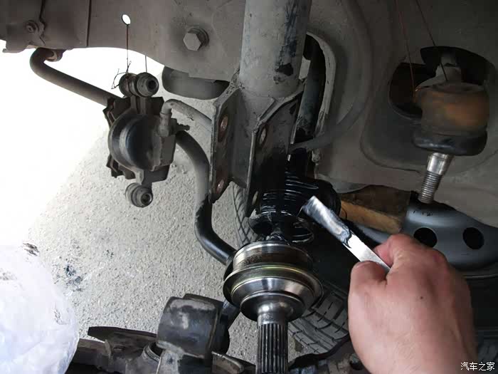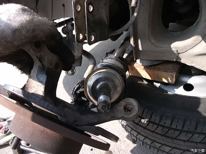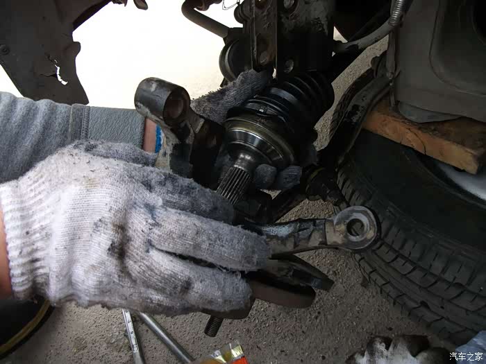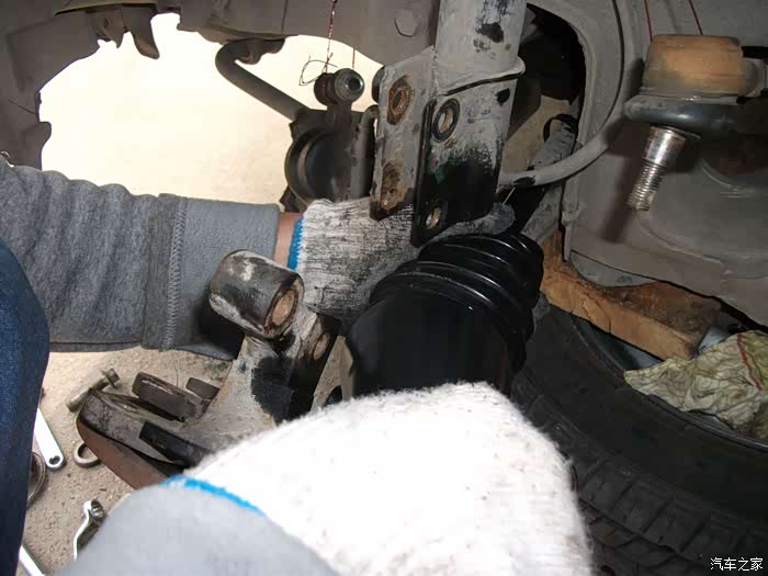 螺丝,得都去掉--------准备把左半轴球笼从羊角上退出来,这是关键地方------精彩部分。