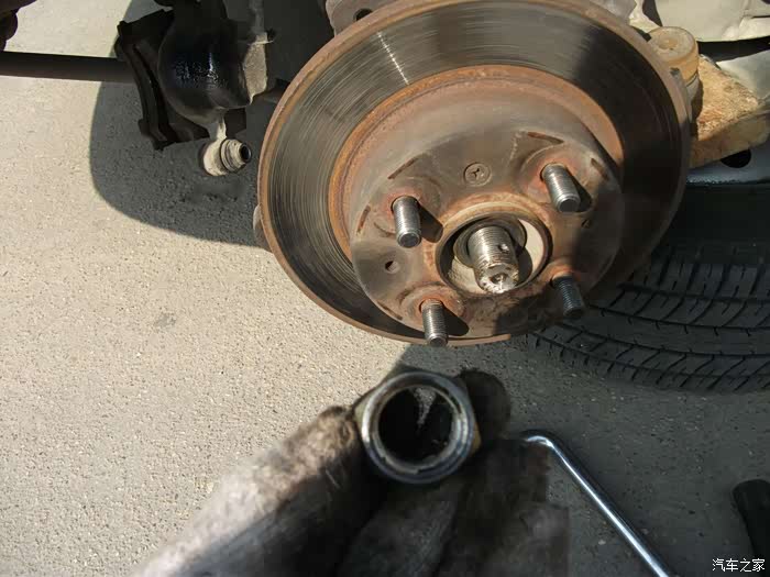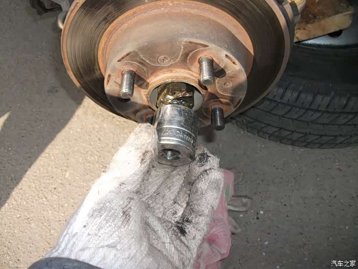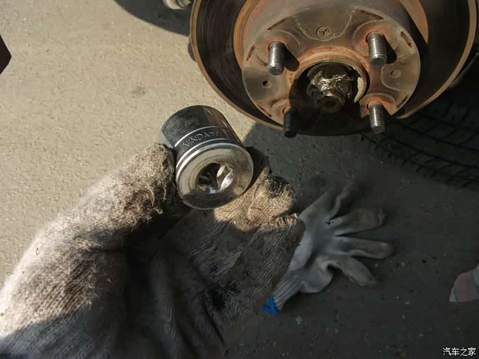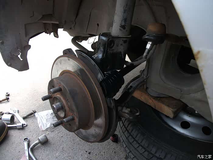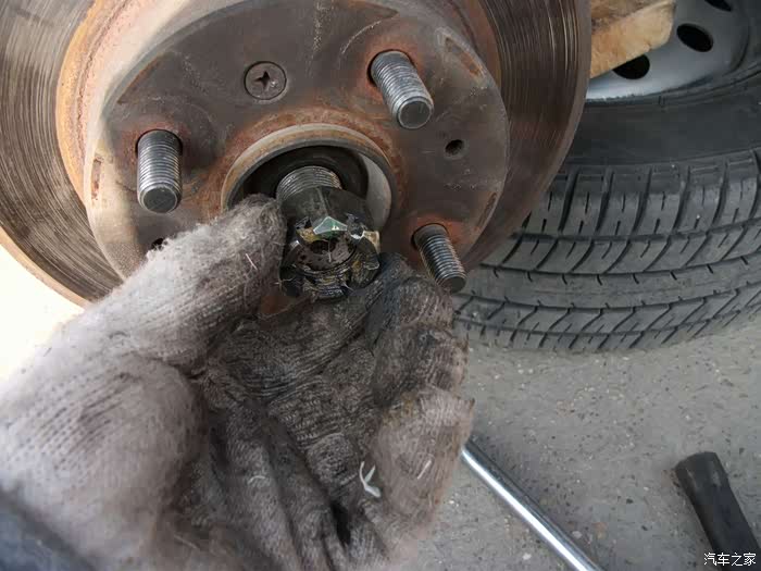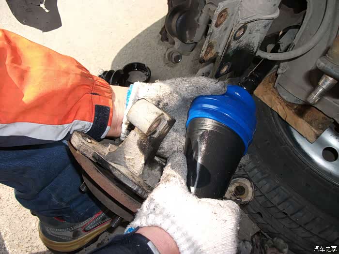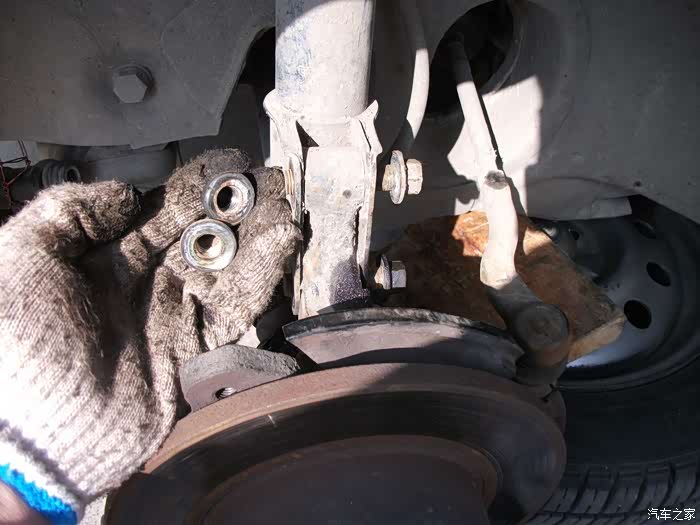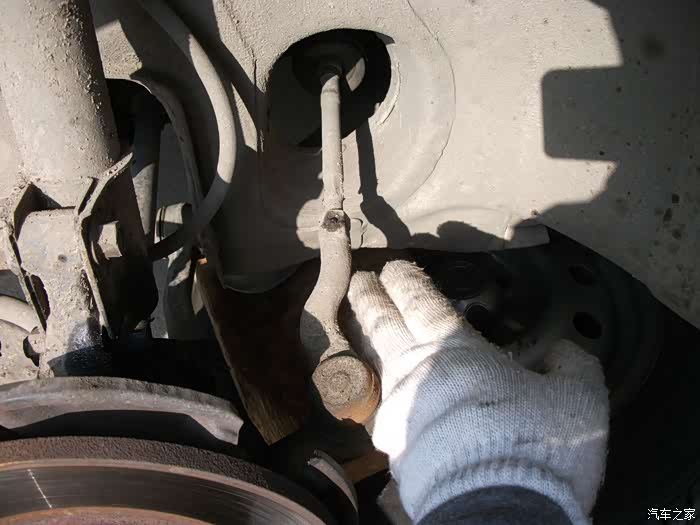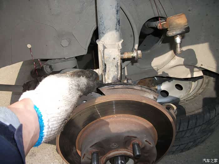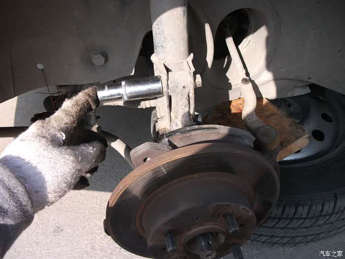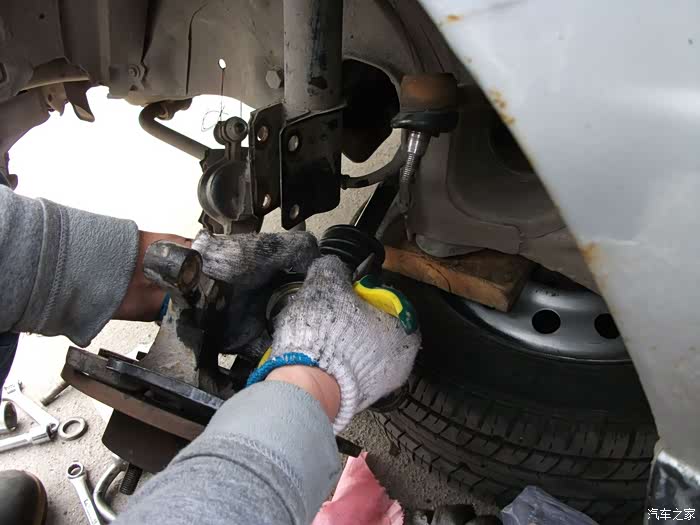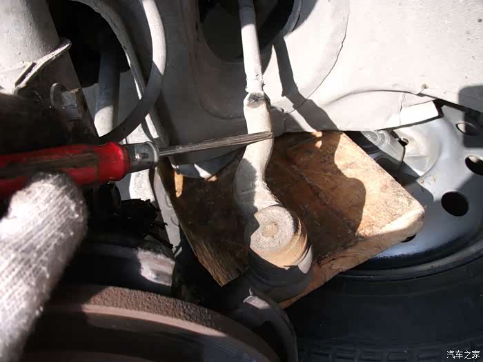 螺丝,得都去掉--------准备把左半轴球笼从羊角上退出来,这是关键地方------精彩部分。