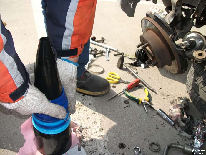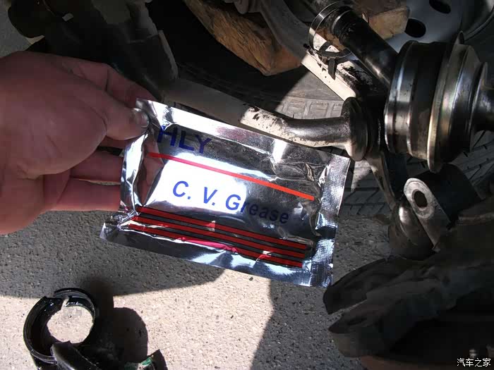 这是左半轴球笼的润滑脂,到时候挤到球笼里去。