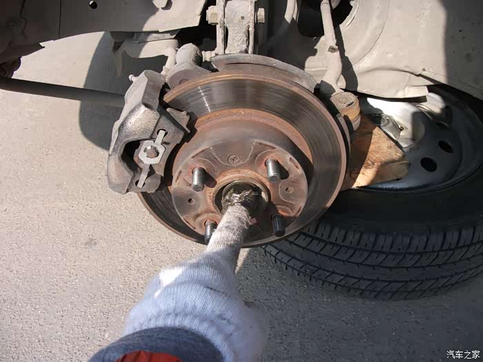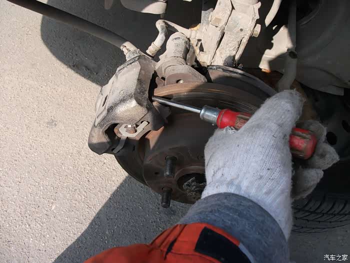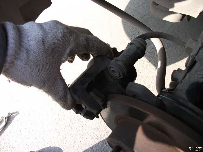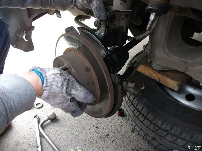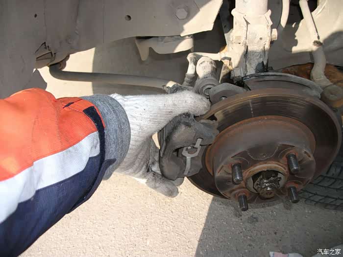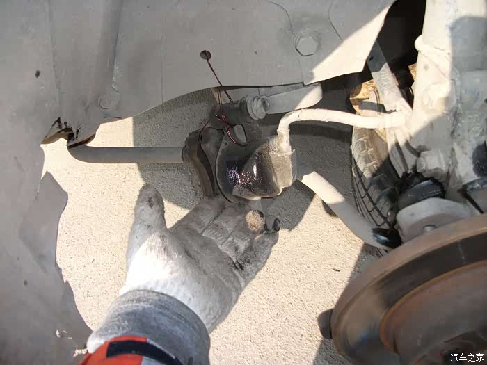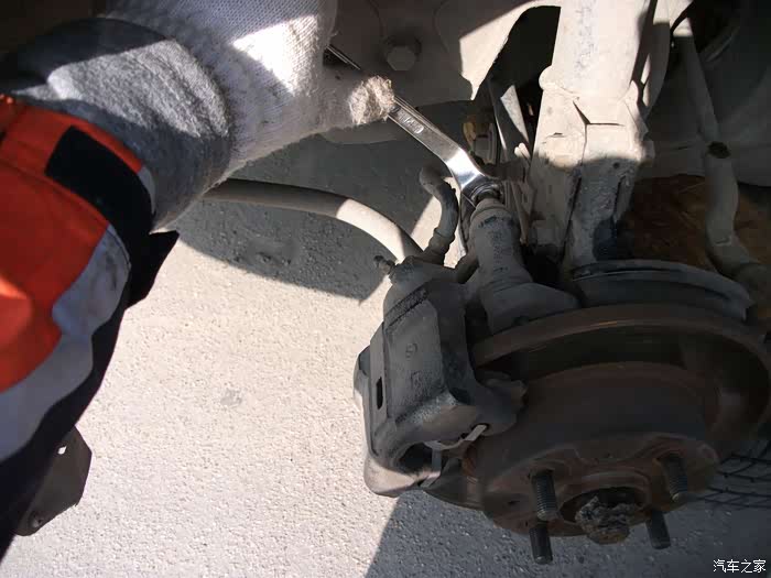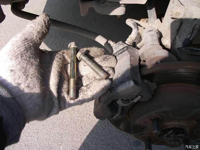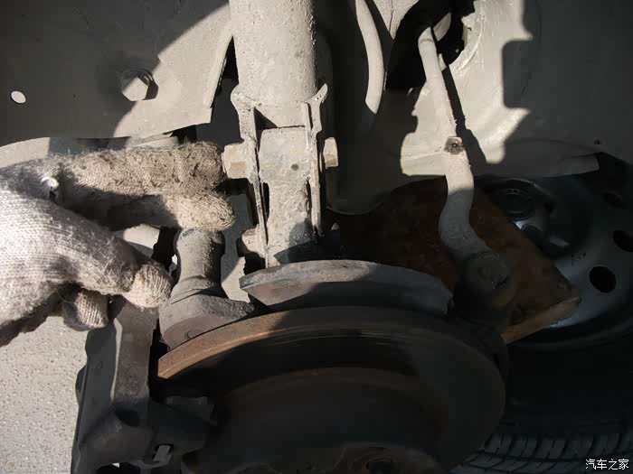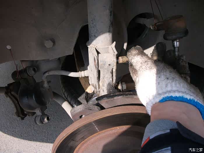 把大轴螺丝拧松,拆刹车钳减震螺丝左转向拉
