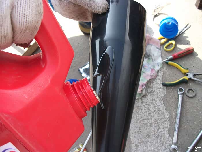 使用原理:小头从上往下使劲一捋到底后拿到左半轴推掉即可,免去了拆卸左半轴的繁杂工序,就这么简单,大伙可以试试。
