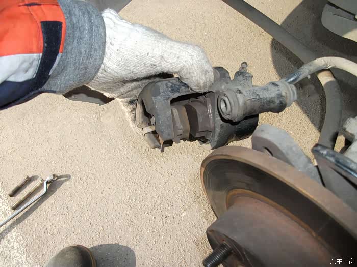 刹车钳很好去掉,上边有两颗螺丝一大一大一小。