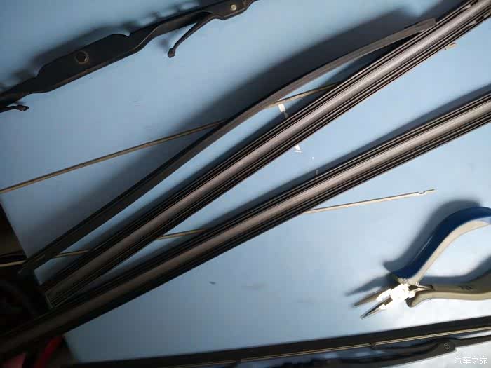 取下的雨刮骨架都很好,换换胶条就行。一般胶条分3种.1、有骨胶条6mm,无骨胶条8mm,三段式8mm