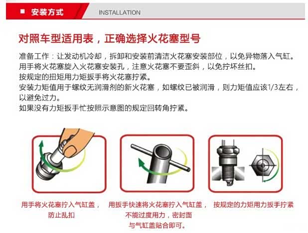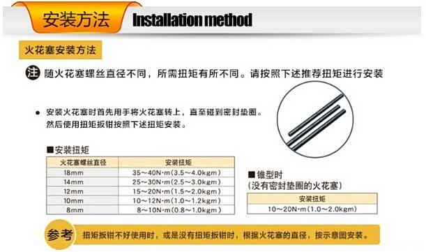 注意到火炬的安装说明,如螺纹已被润滑,则力矩值应该1/3左右。