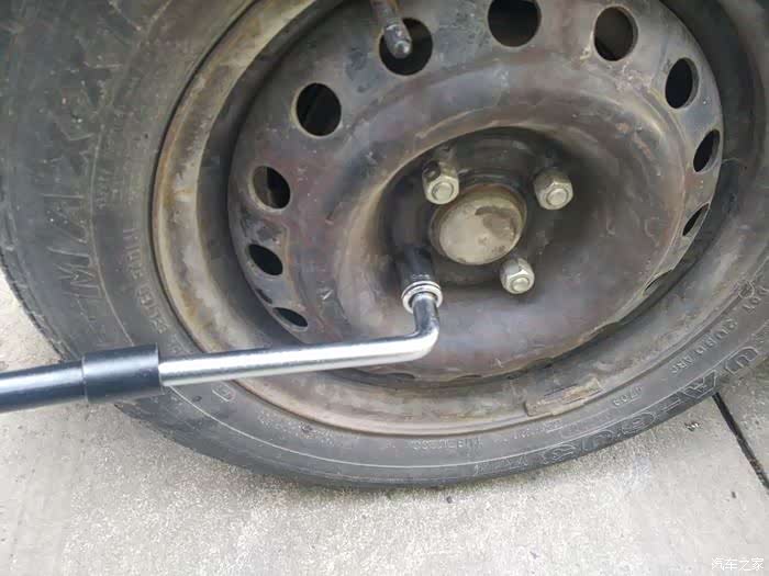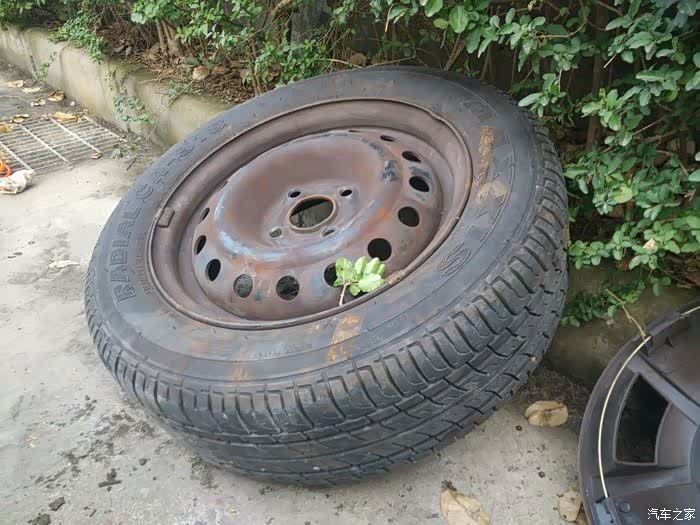 右前轮铁轮毂粘合紧密,脚踹了好多次都没作用。