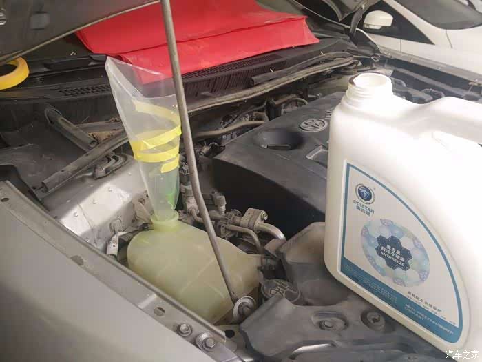 加入近6升防冻液,启动车辆到暖水阀开启,再补足。收工!
