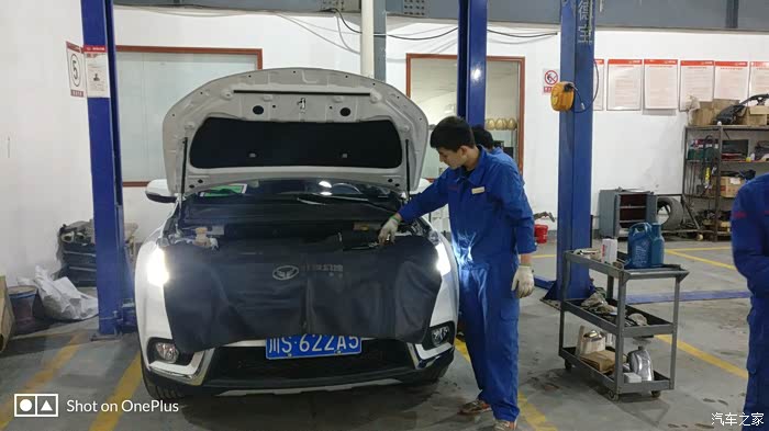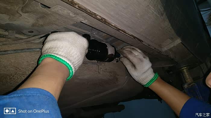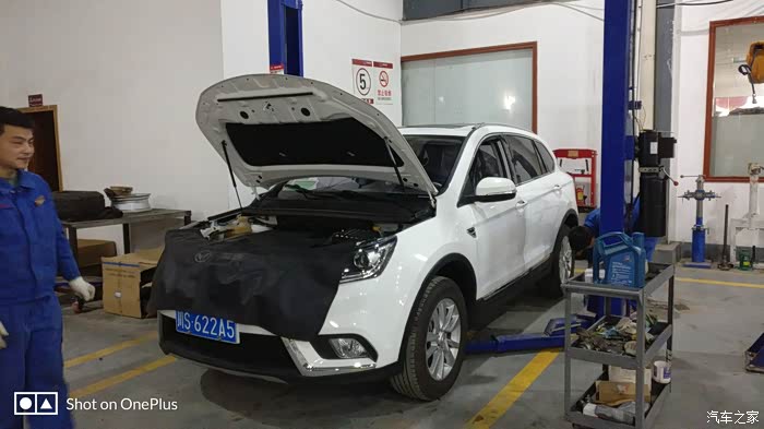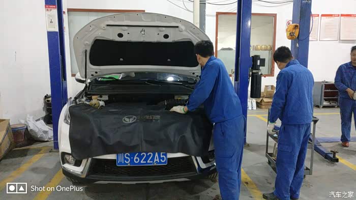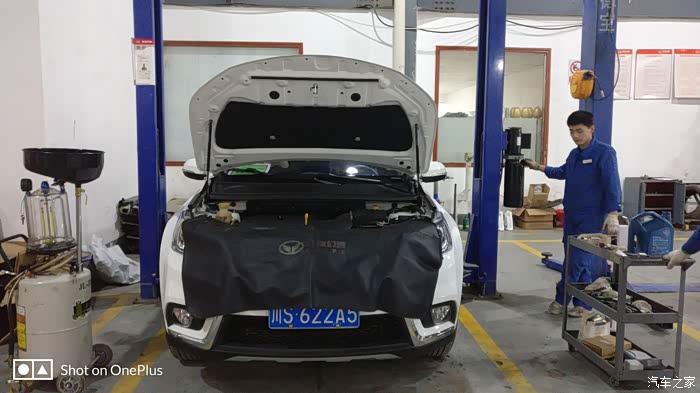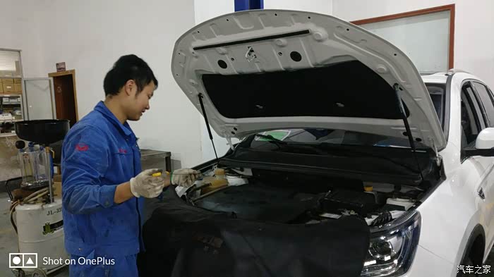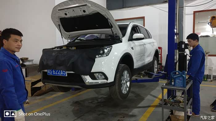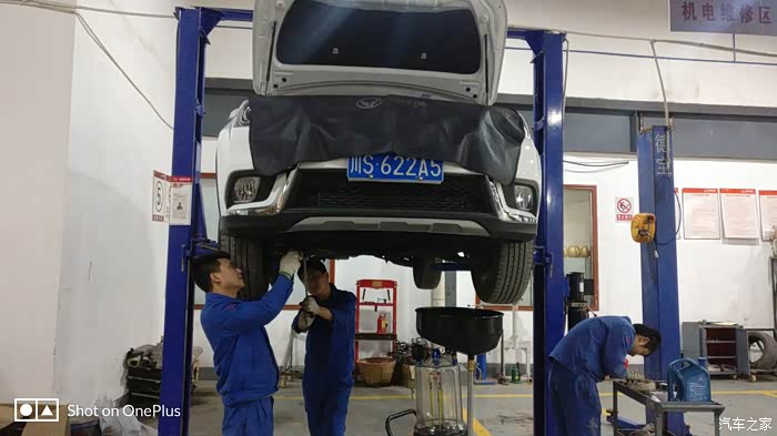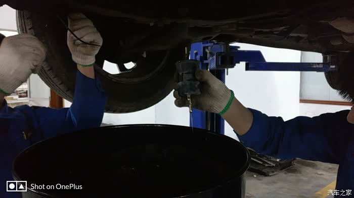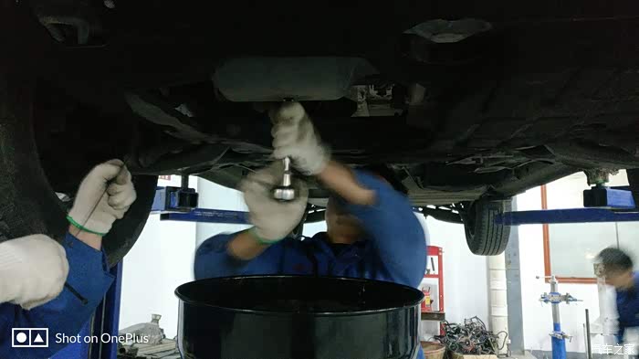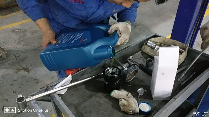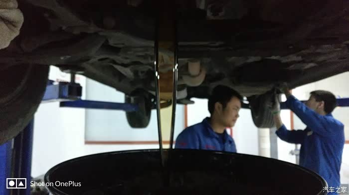 师傅已经装上了新鲜的全合成机油,再检查一下机油尺,装完机油之后又升级了小六,再检查一下机油会不会漏,师傅又很仔细的检查了一下底盘。