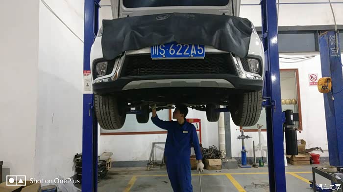 这位保养师傅先给底盘各个螺母紧固,检查来一张底盘的照片,保养师傅说还挺干净的。
