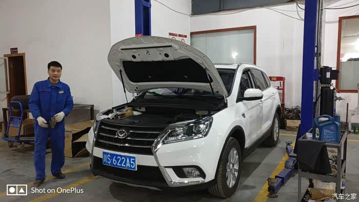 保养师傅先打开机油盖,拔松机油尺,去把小六给升起来了。