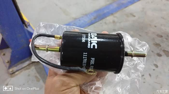 这是师傅拿下旧的汽油滤清器
