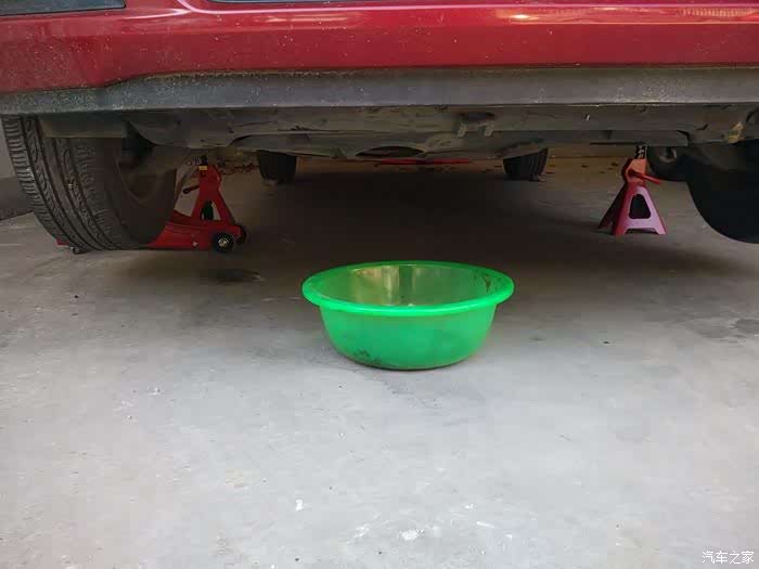 用安全支架支撑,接废油的脸盆走起。