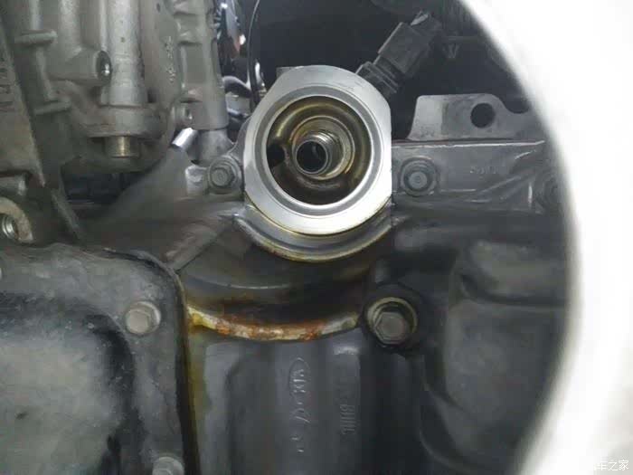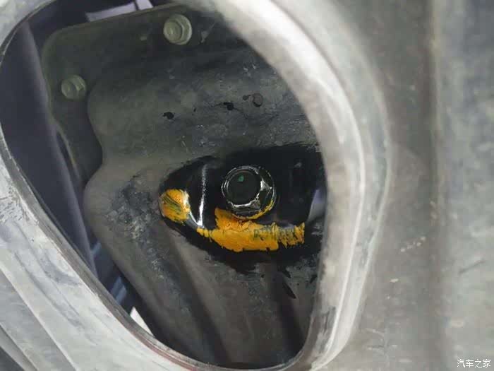 拧松机油盖,拉松机油尺 。放油螺栓上铝制垫片,早变形了,幸好准备了。放油螺栓的六个棱角全毛了,没给准备先对付上,下次更换吧。说实话不应该啊。她前面都是去4S保养的。