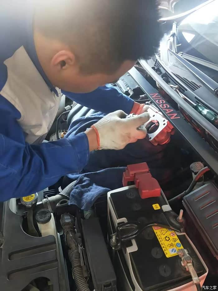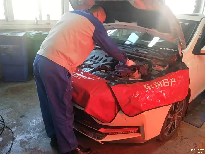 技师小哥哥再给我清理发动机空气滤芯,我1之前换过,这次清理一下就可以了。
