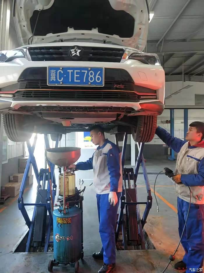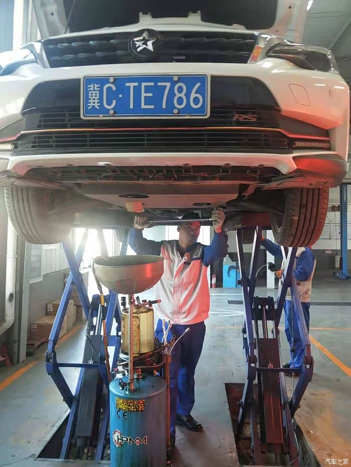 放出旧机油,技师小哥哥在紧固地盘螺丝,另一个技师在调整胎压由于我去的太早了,还没有别的顾客,所有技师都为我一个人服务了,太到位了整得我都有点不好意思了