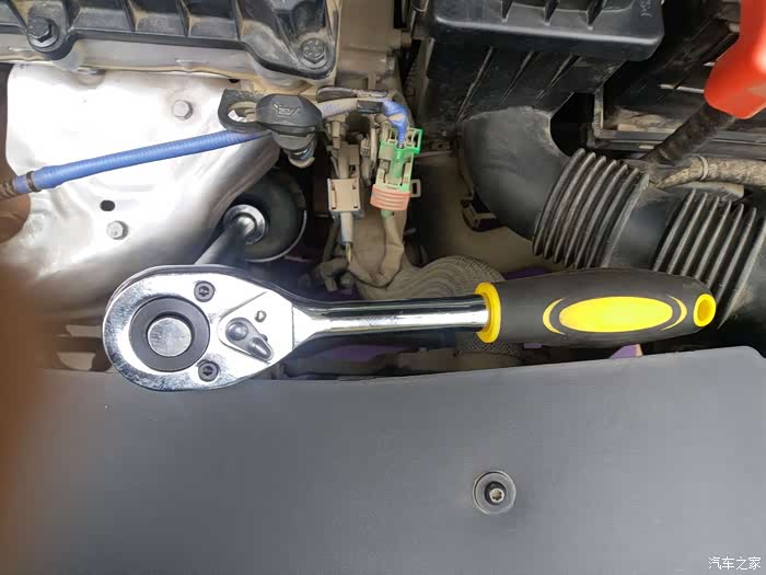 放油螺丝清理干净,装回拧紧。垫片以前换过一次,这次就先不换了