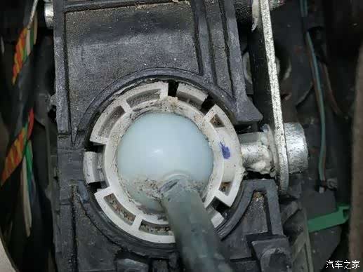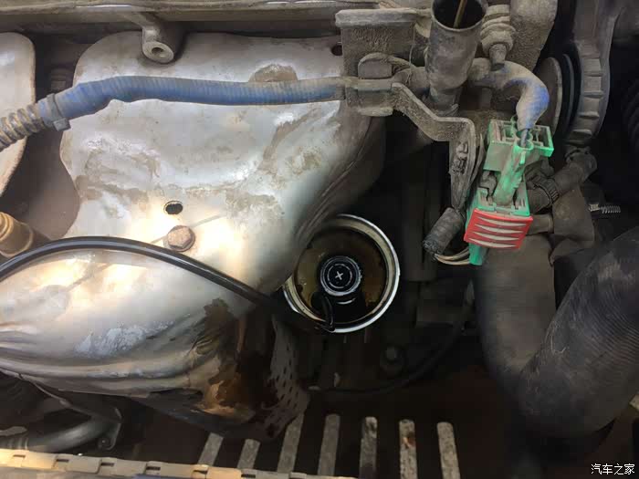 机滤上先做好记号,用27mm套筒拧开塑料机滤盖。里面的废油用那个有点漏气的负压抽油器抽抽