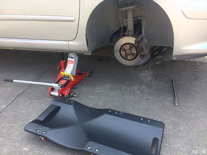 只得用17mm套筒卸下右前轮,24mm卸下铁护板的后2个固定螺栓,让铁护板耷拉着。