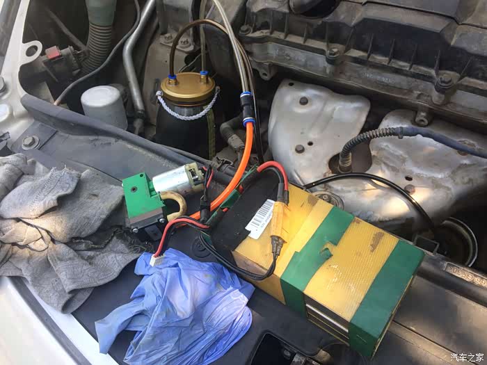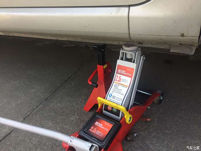 由于自制的负压抽油器,黄桃罐头盖子的密封圈有点老化。这次就没从机油尺抽油,而是准备从下面放油。