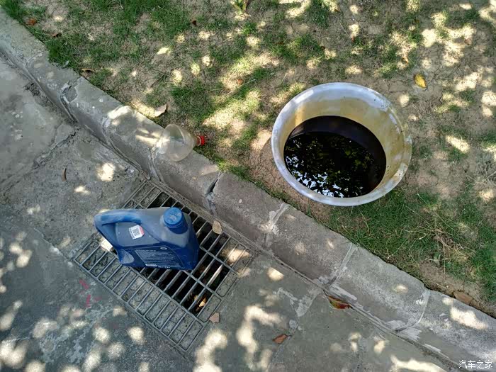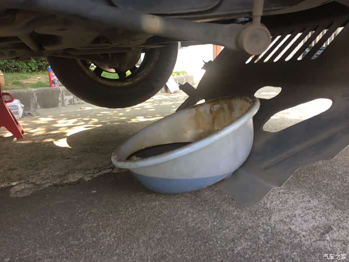 24mm套筒拧下放油螺栓,接废油的脸盆足够大些的好处就体现了。虽然不能放平,但也能稳稳的接住废油没有一点漏地上。