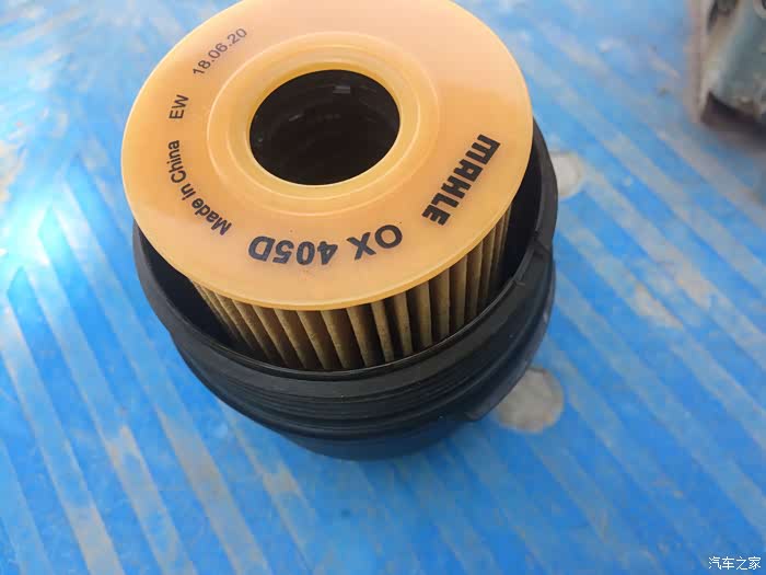 机滤盖上的旧密封圈拆了,用化清剂把机滤盖螺纹内清理干净,换上新的机滤和密封圈。新机滤是马勒的OX405D