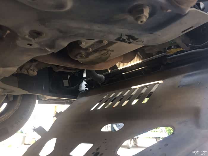 发动机下有铁护板,铁护板的前2个固定位被前面的塑料护板给覆盖着,可固定塑料护板的3个螺母有2个已经跟转,无法取下。