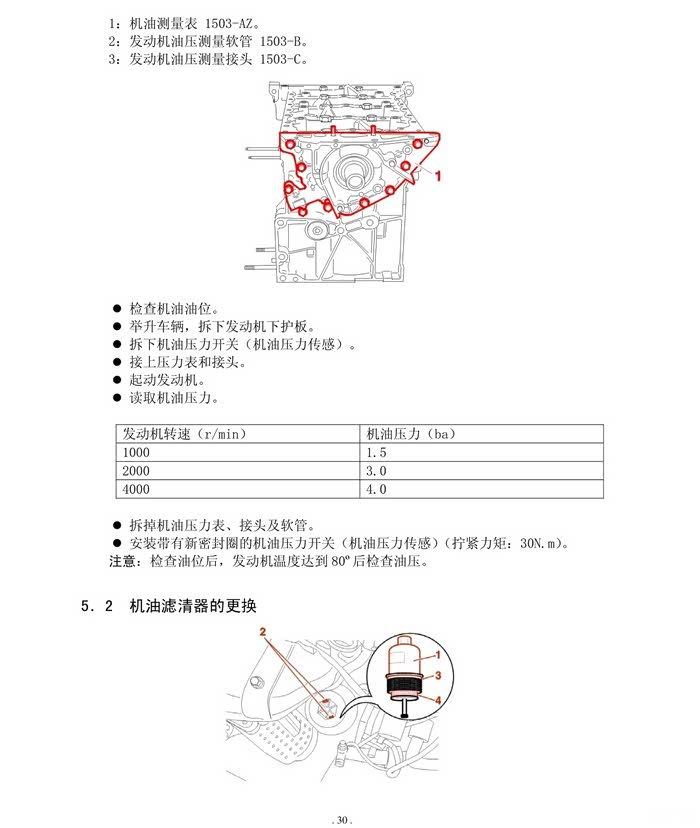灌入3.5L新油后,点火测试。检查机滤盖和放油螺栓有无漏。恢复护板,按回轮胎后放平车辆。