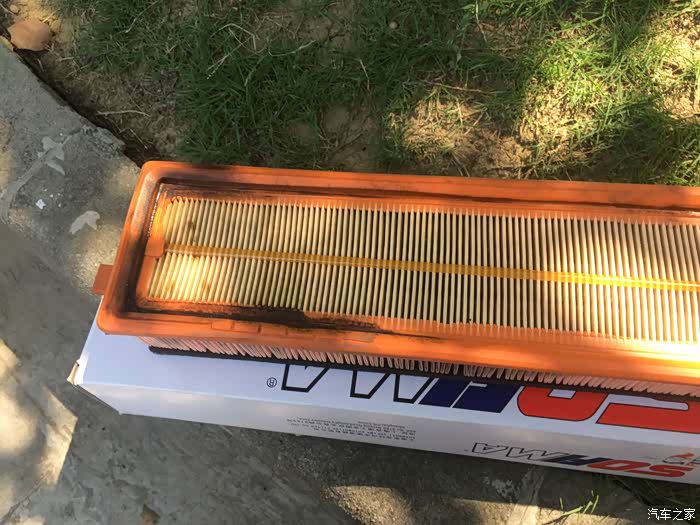 妈呀,这么多操作就取出个旧空滤,废气管够油腻的,空滤上对应位置都有油污了。他这车够年纪了,再过个年把好像要一年两审了。