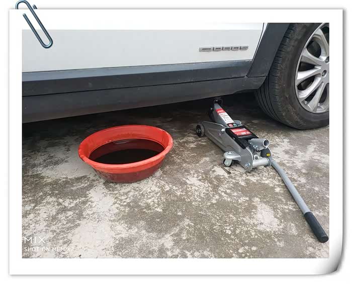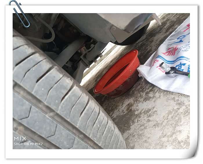 拧好放油螺丝,最终车里放出来的老抽有这么多,会给“你们”打包好送给修理厂的废机油回收桶去的;