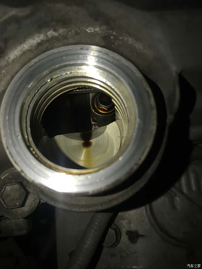 放油螺丝刚拧松,拿出手机拍照,就开始有机油渗出