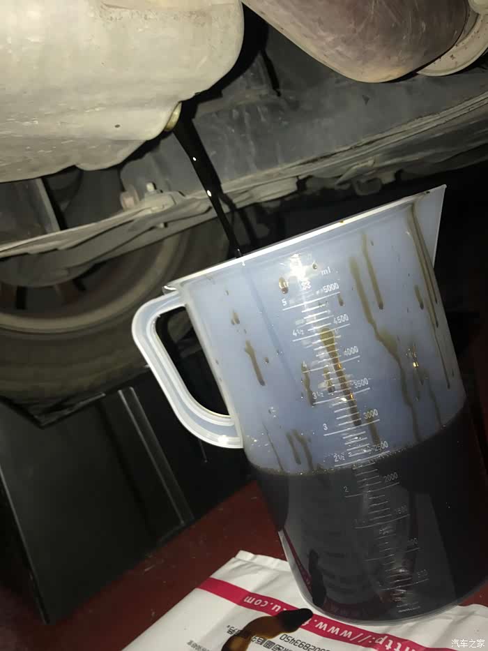 拧开之后哗啦啦的就喷出来了,因为是第一次换,手上还是喷到了一点,这时候就是有戴手套的好处了,虽然油比较热,但有手套保护,一点事都没有