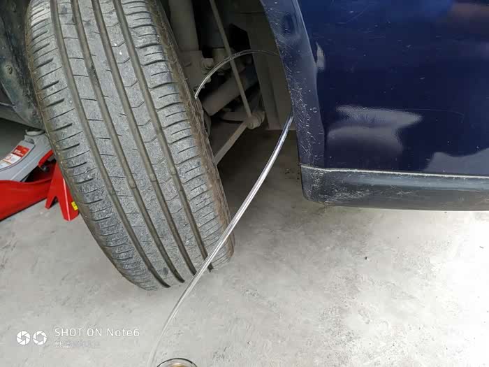 拧回后排至新油出来,实际新油早出来了,已经多排了很多。整个刹车系统也就1.1L刹车油。是否真漏油,只能多观察了。也幸好刹车油壶是带传感器的,低液位会提示车主。