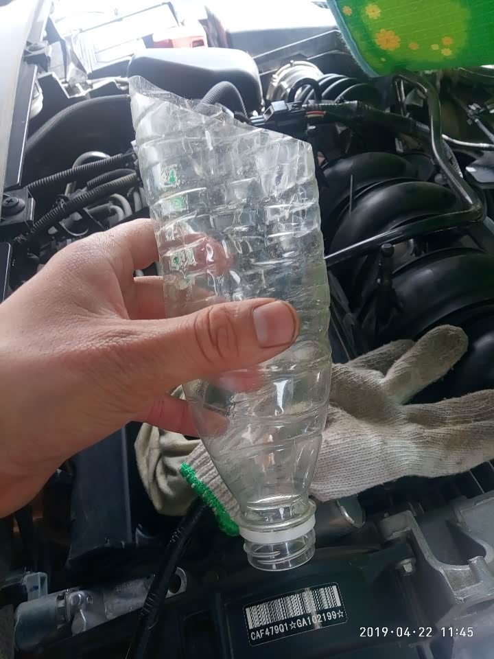 倾斜角度放的机油比平时升降机多半斤半矿泉水瓶