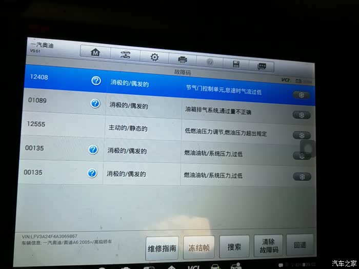 每次保养大家一定要进行电脑检查,因为很多故障我们无法察觉,但是会以故障码的形式记录在汽车电脑中。进行电脑检测,就可以更加精准的了解车辆状况。(EA888发动机废气报警灯会先以空气流量过低报节气门故障,如果不及时处理仪表会出现仪表报警灯。)