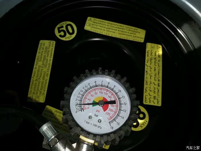 我们在保养检查中很多备胎胎压处于不足状态,一般备胎充气压力在3.5Bar左右。