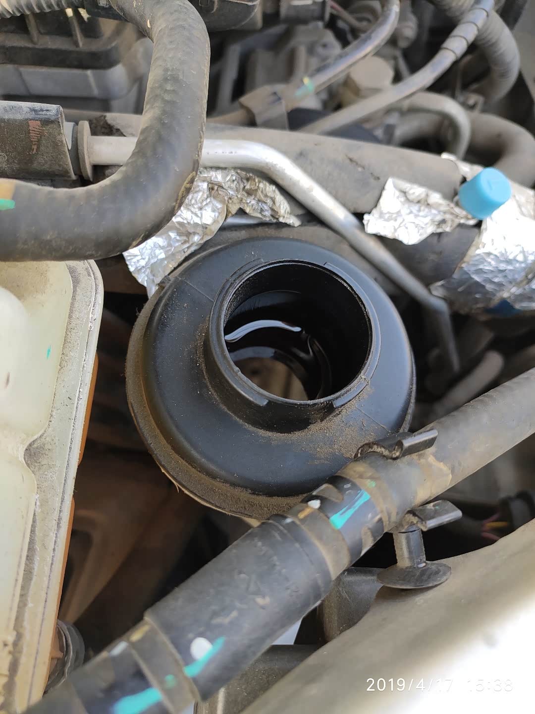 顺便检查下助力油,竟然发现周边全是灰。